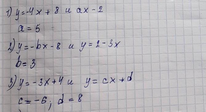б) у = bх– 8 и у = 3x+5 были параллельны.
