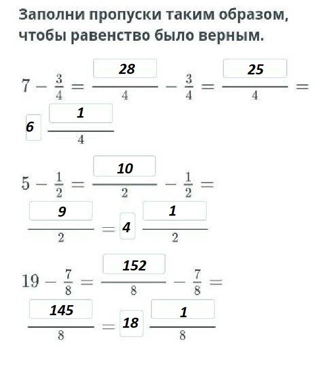 ²⁸/4-³/4=²⁸-³/4=6¹/4