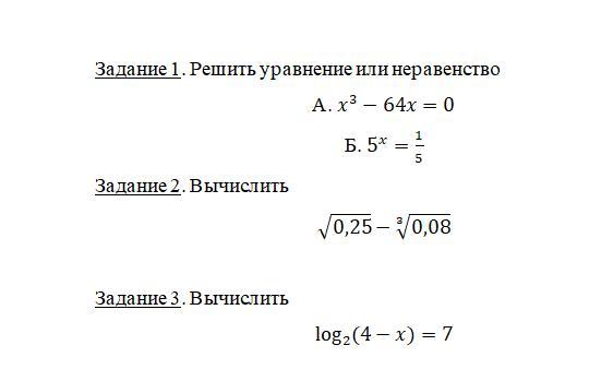 Задание А. Уравнение. Ответ: х=0; х=8, х=-8