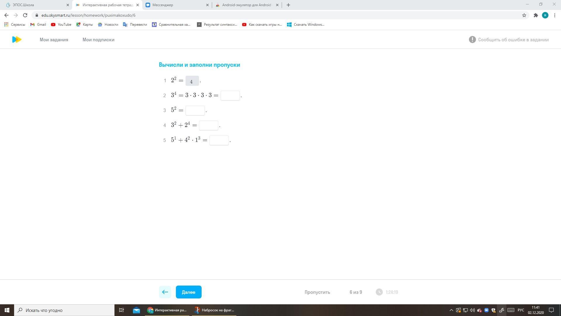 первое ты ответил Так что начну со второго.(во втором ответ-81. в третьем-25. в четвёртом тоже ответ 25 . а пятое плохо видно сори. и если не правильно то тоже сорьки
