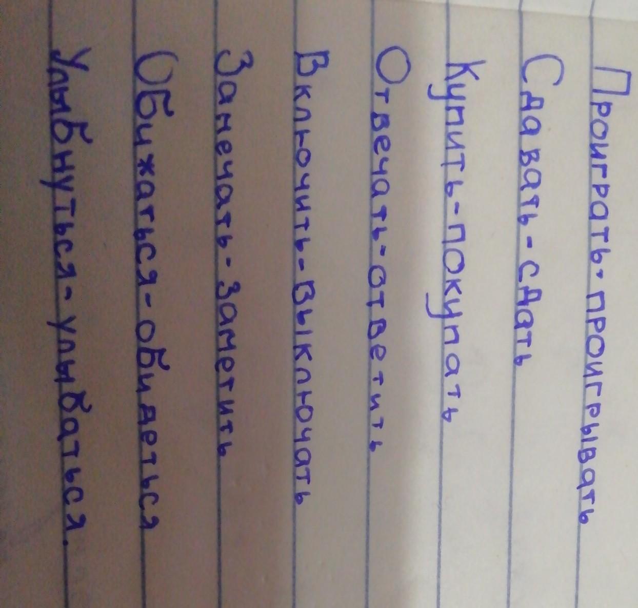 купить, отвечать, включать, выключить, замечать, обижаться,