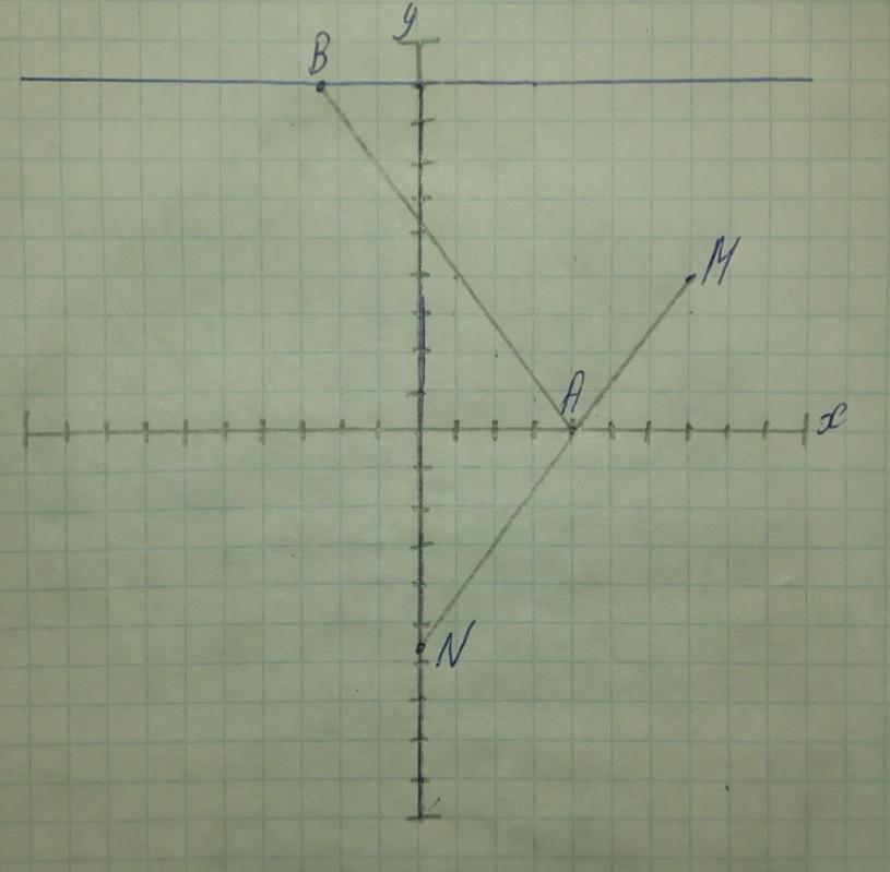 т.к. AB=MN => корень((x-2)^2+(0-1)^2)=корень((9-x)^2+(2-0)^2) возведет обе часть в квадрат и получим: