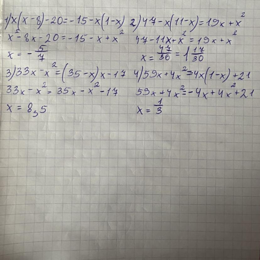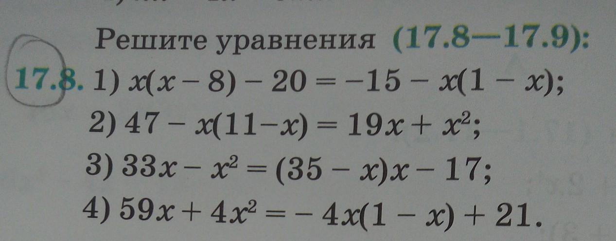 17.8. 1) х(х - 8) - 20 = -15 - x(1 - x);