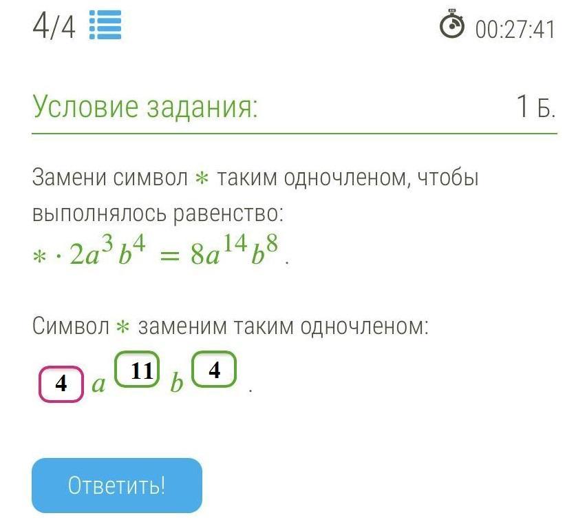 x=8a^14b^8/2a^3b^4=4a^11*b^4.