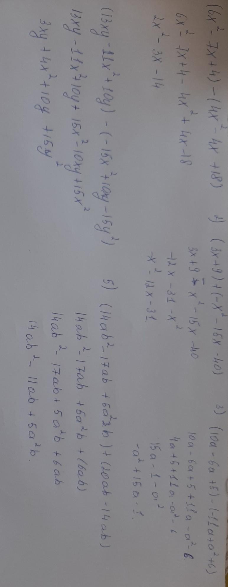 4) (13xy - 11х2 + 10у?) - (-15х2 + 10xy - 15y2);