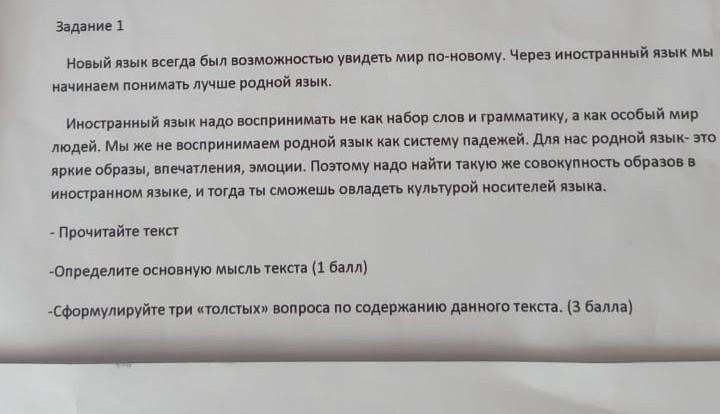 Сформулируйте три «толстых» вопроса по содержанию данного текста(3 балла)