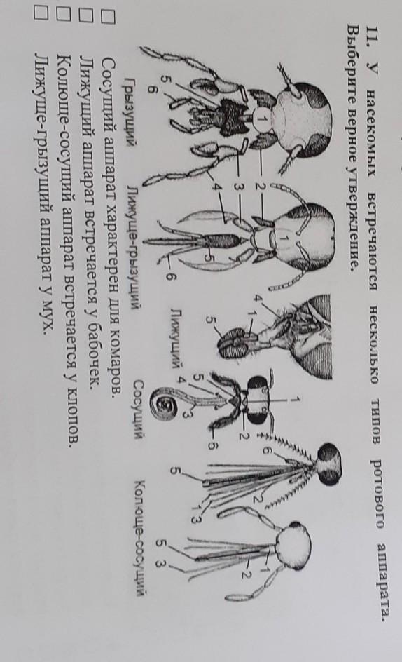 1. У насекомых встречаются несколько типов ротового аппарата.
