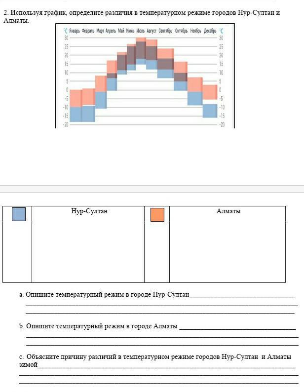 . Используя график, определите различия в температурном режиме городов Нур-Султан и Алматы Срочнооо