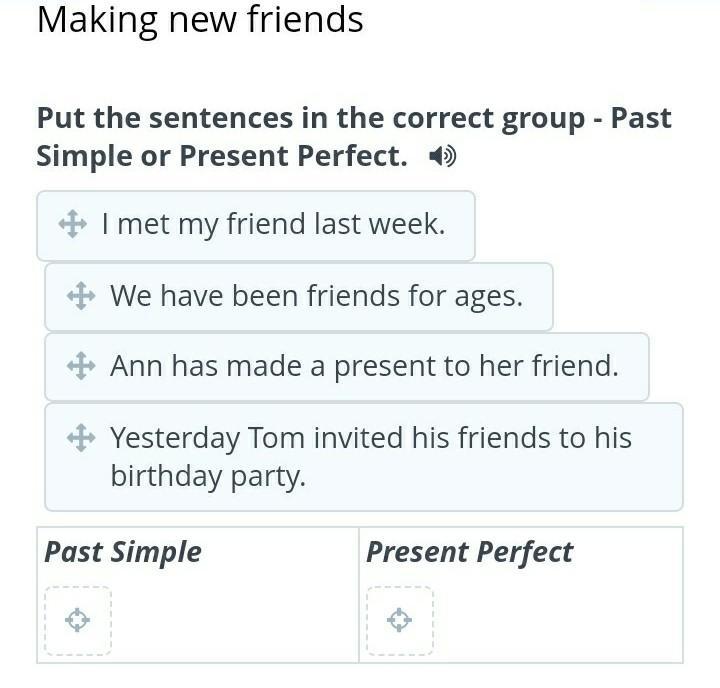 Put the sentences in the correct group - Past Simple or Present Perfect.