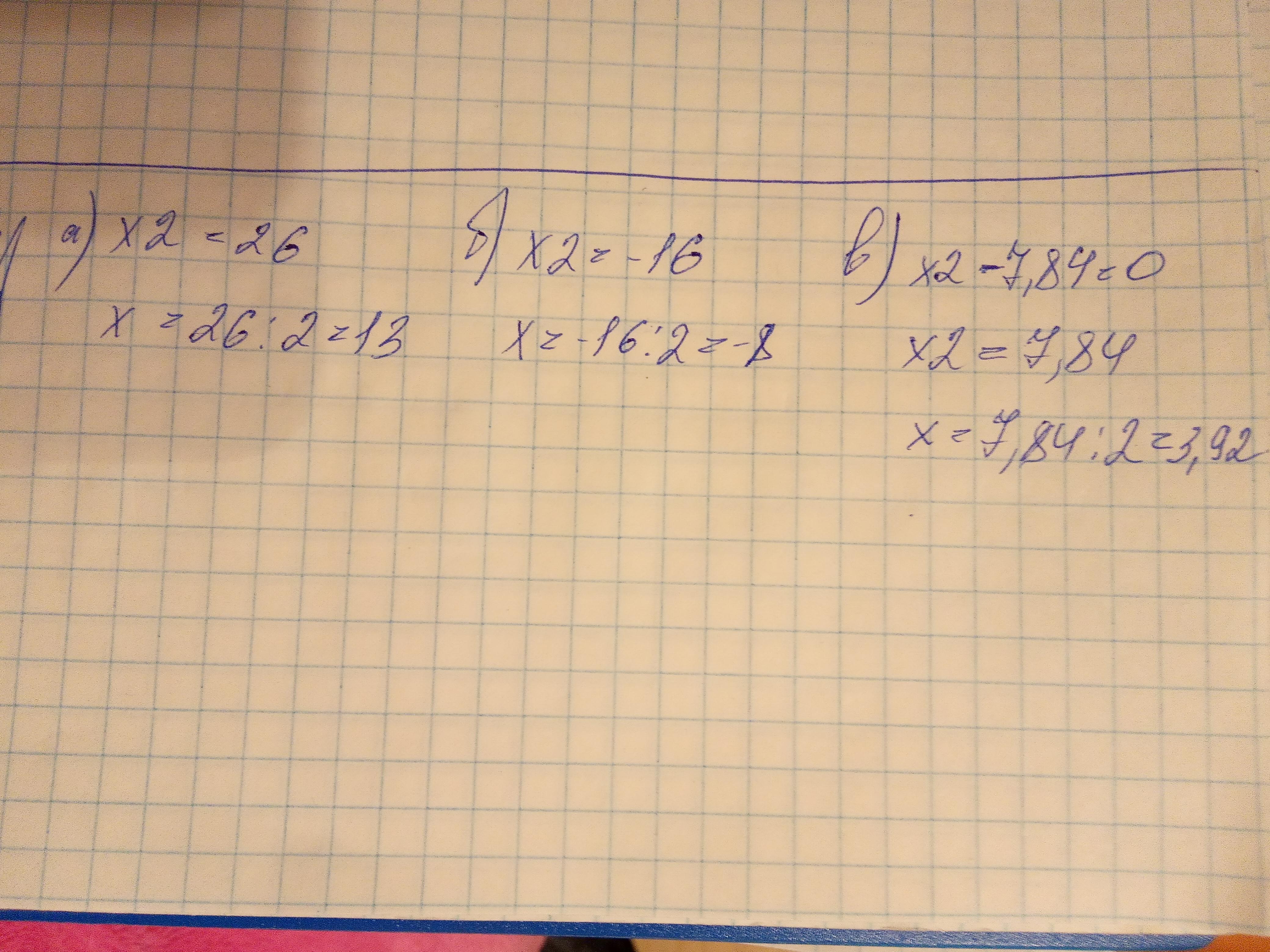 а) х2 = 26; б) х2 = - 16; в) х2 – 7.84 =0 обязательно с решением.