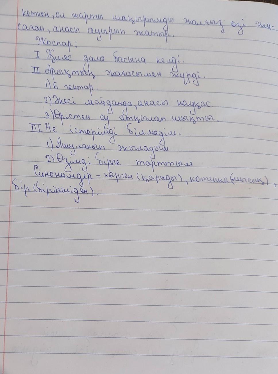 баянда. Жоспар құр. Мәтіндегі синонимдерді тауып жаз.