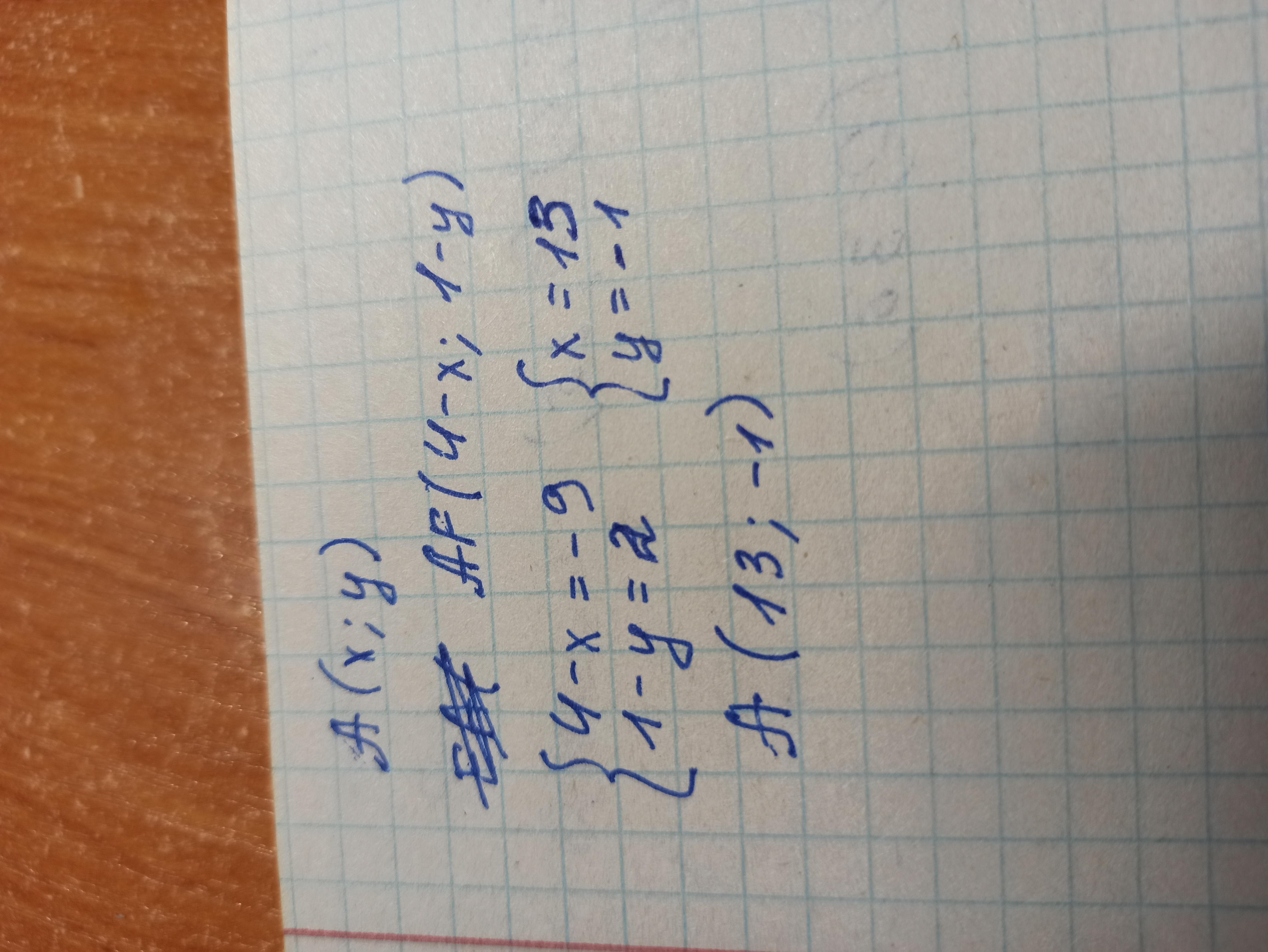 Позначаємо координати точки А (х;у). Щоб знайти координати вектора АF, треба від координат кінця відняти координати початку, тобто від F відняти А. Віднімаємо, враховуючи координати А (x;y) і прирівнюємо до відомих. Шукаємо х і у