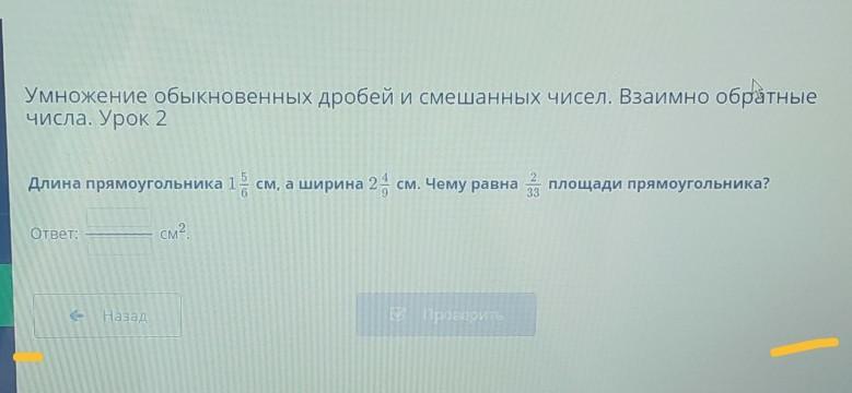 Длина прямоугольника 1 5/6 см, ширина 2 3/4 см. Чему равна - площади прямоугольника?