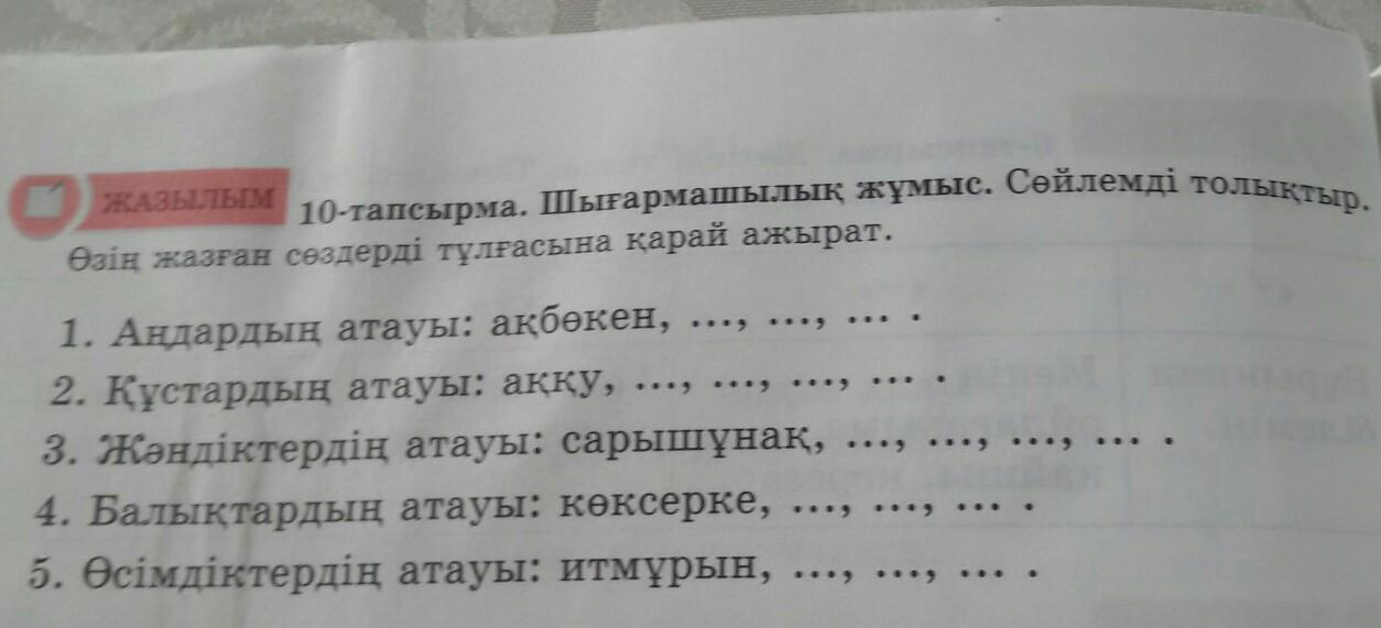 10-тапсырма 70бет 5сынып Қазақ тілі Сөйлемді толықтыр. Өзің жазған сөздерді тұлғасына қарай ажырат.