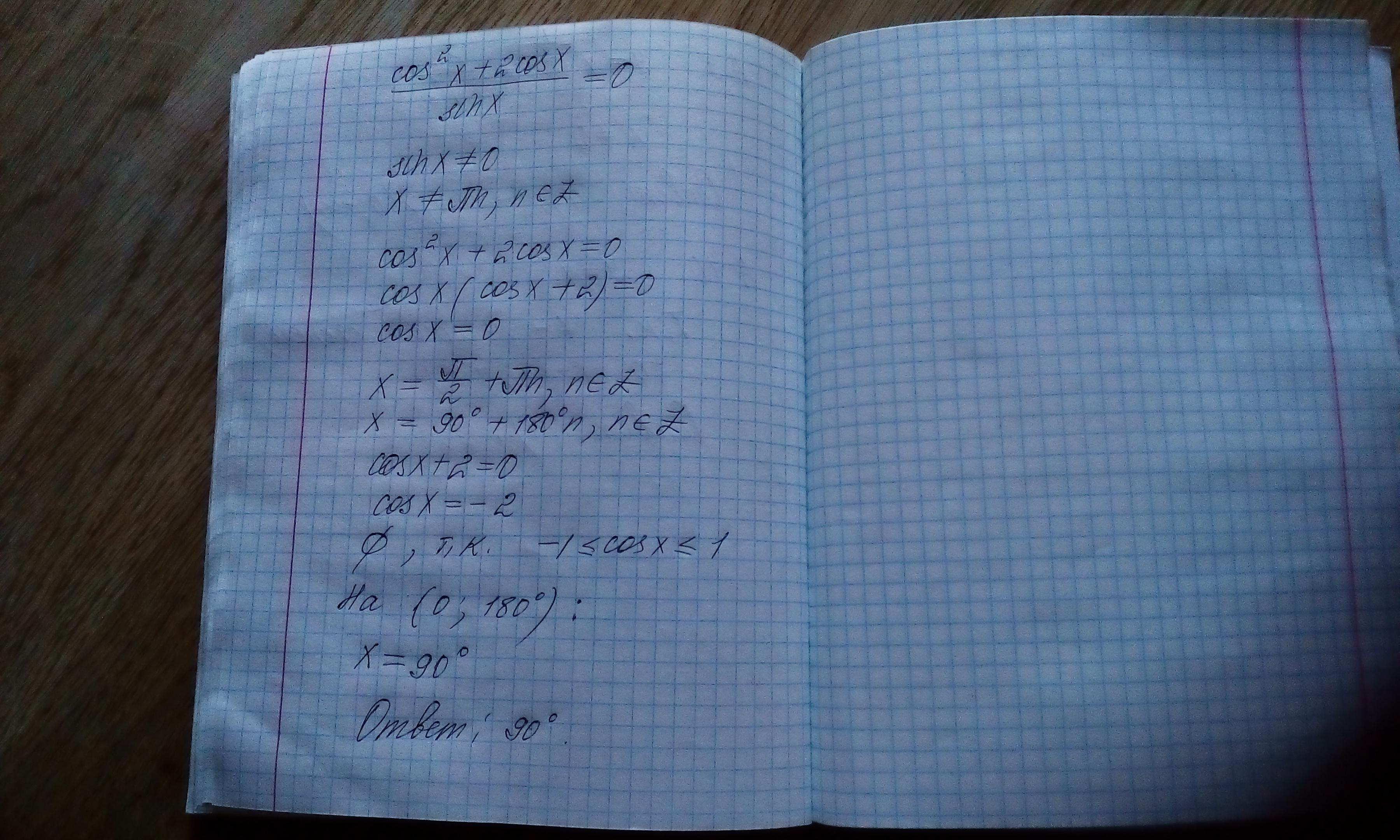 cos²x+2cosx/sinx=0 на промежутке (0; 180°)
