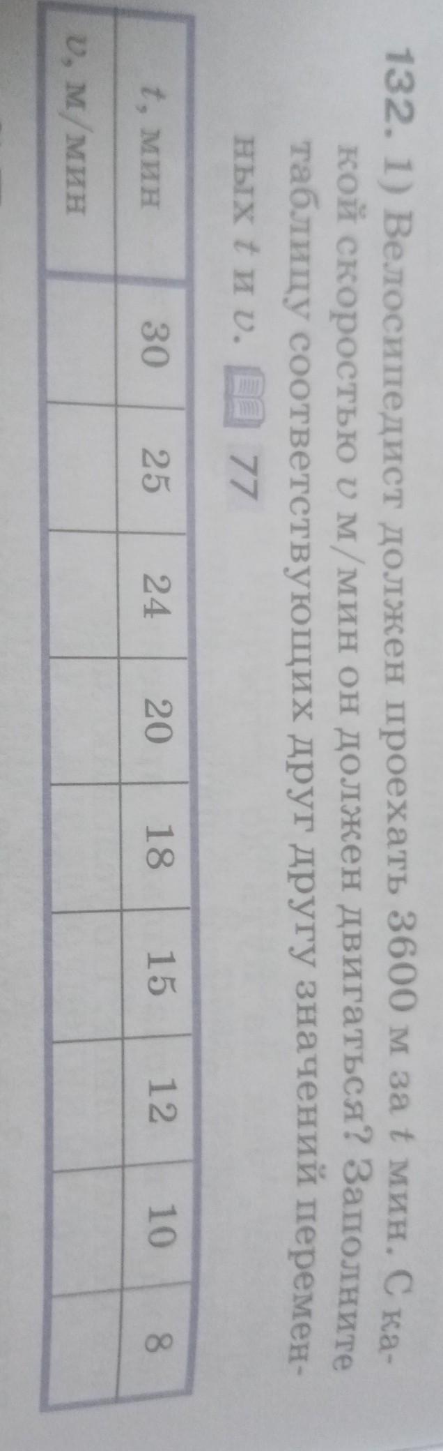 велосипедист должен проехать 1200 км за 5 минут с какой скоростью в минуту он должен двигаться Заполните таблицу соответствующие друг другу значение переменных тыв
