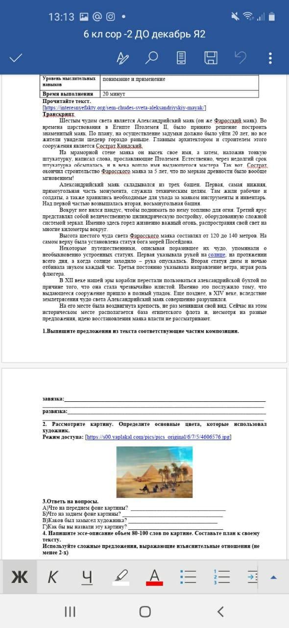 Ответ:1. Завязка: На мраморной стене маяка он высек свое имя, а затем, наложив тонкую штукатурку, написал слова, прославляющие Птолемея. Естественно, через недолгий срок штукатурка обсыпалась, и в века вошло имя выдающегося мастера.