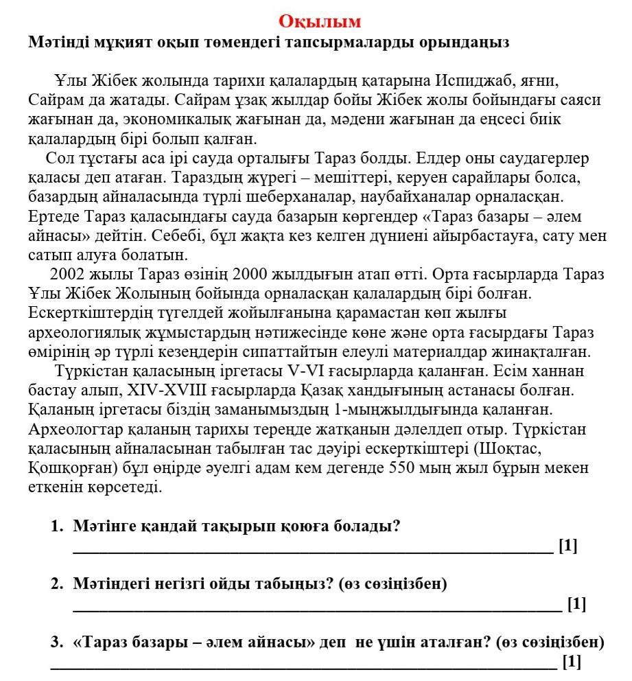 3. «Тараз базары – әлем айнасы» деп не үшін аталған? (өз сөзіңізбен)