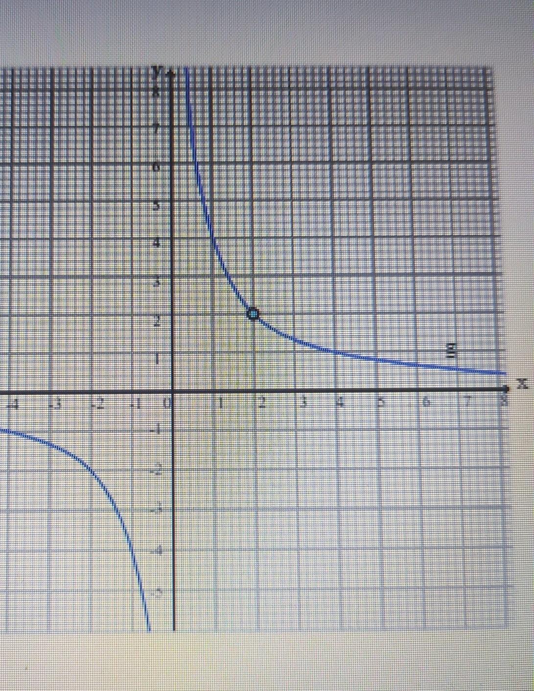 На рисунке представлен график функции g = k/x. Найди значение k.