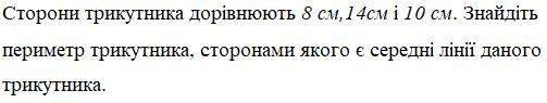 Естле стороны треугольника 8см,14см,10см и также надо найти периметр по серединам линий то :Р=4см+7см+5см=16 см