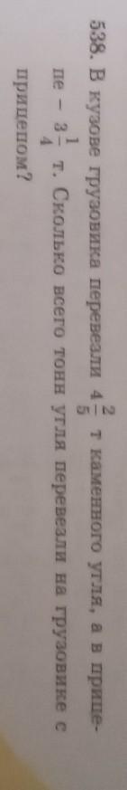 4 2\5+ 3 1\4= 4 2*4\5*4 + 3 1*5\4*5=4 8\20 +3 5\20=7 13\20 т угля на грузовике с прицепом