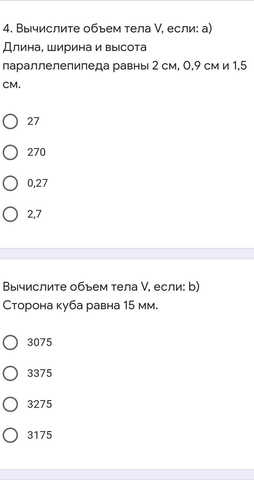 Вычислите объем тела V, если: a) Длина, ширина и высота параллелепипеда равны 2 см, 0,9 см и 1,5 см.