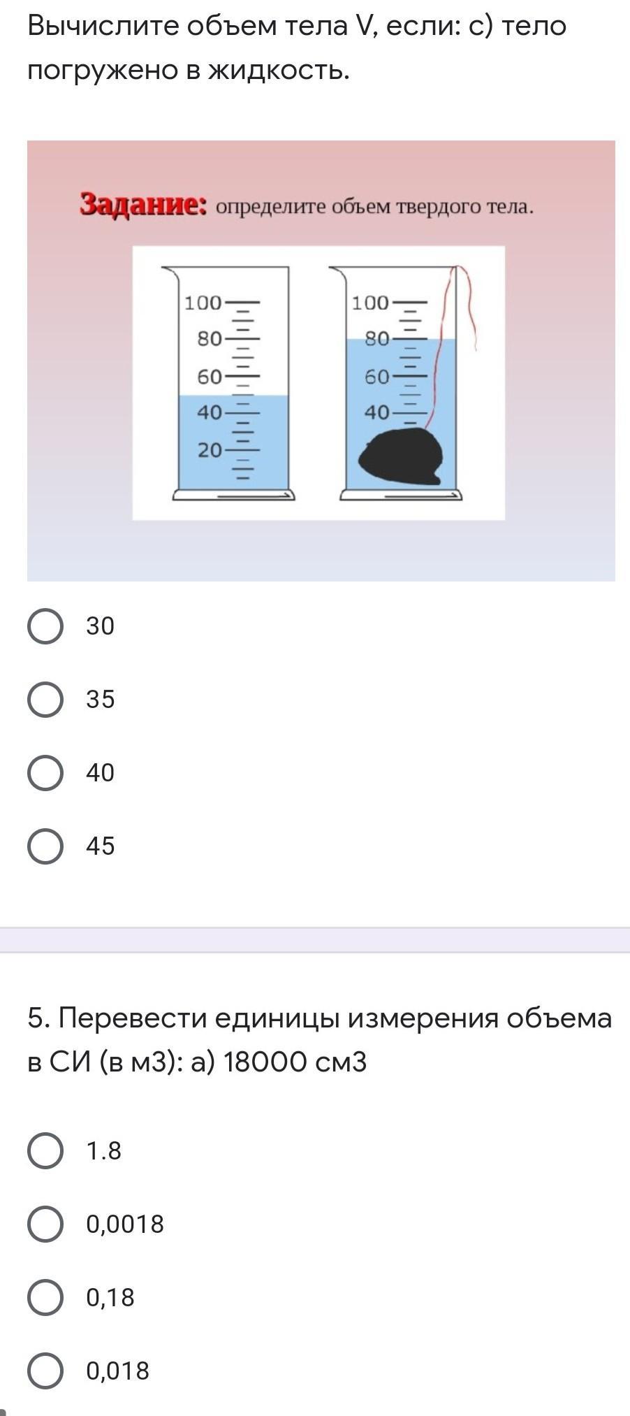 5. Перевести единицы измерения объема в СИ (в м3): a) 18000 см3