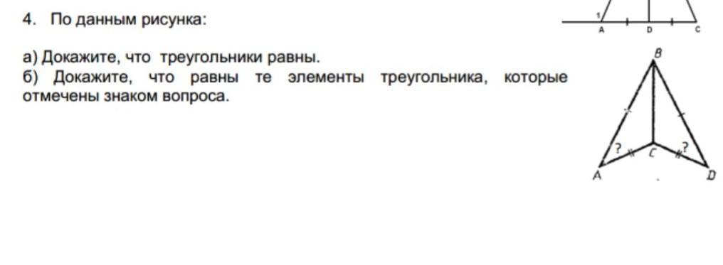 б) Докажите, что равны те элементы треугольника , которые отмечены знаком вопроса .