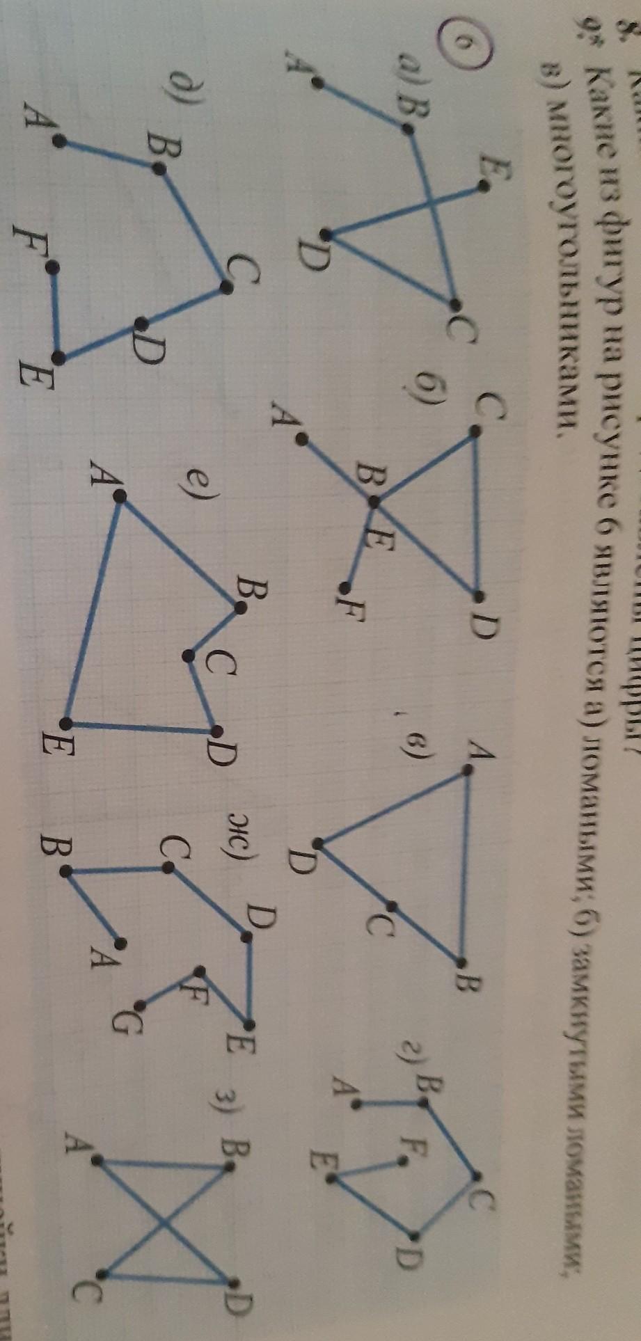 9? Какие из фигур на рисунке б являются а) ломаными; б) замкнутыми ломаными,