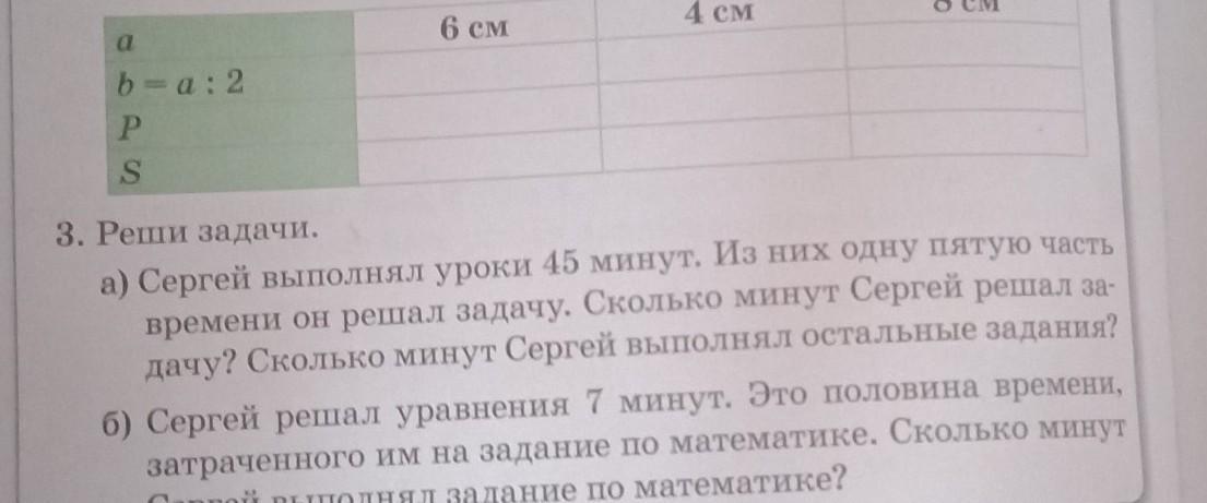 Сергей выполнял уроки 45 минут. Из них одну пятую часть времени он решал задачу. Сколько минут Сергей решал задачу? Сколько минут Сергей выполнял остальные за́дания?