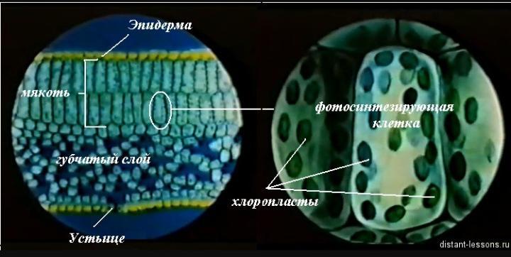 Чтобы лучше понять значение зеленых листьев в жизни растений, познакомимся с внутренним строением листовой пластинки.