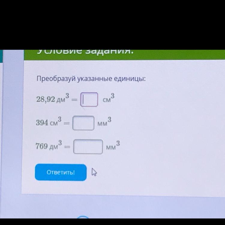 769 дм3 = 769000000мм3