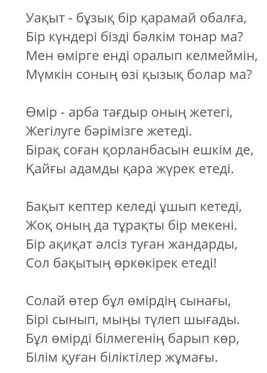 Мында 4-шұмақ ты өлең. Надеюсь не помишает.