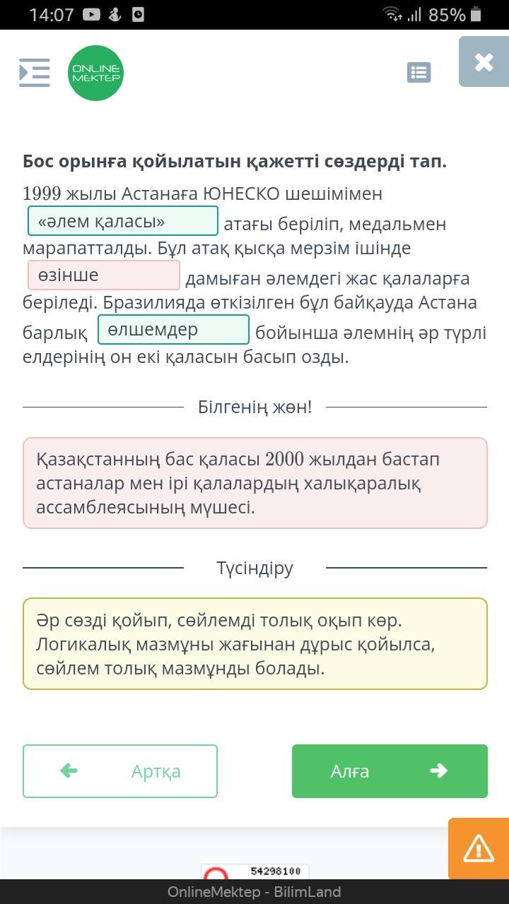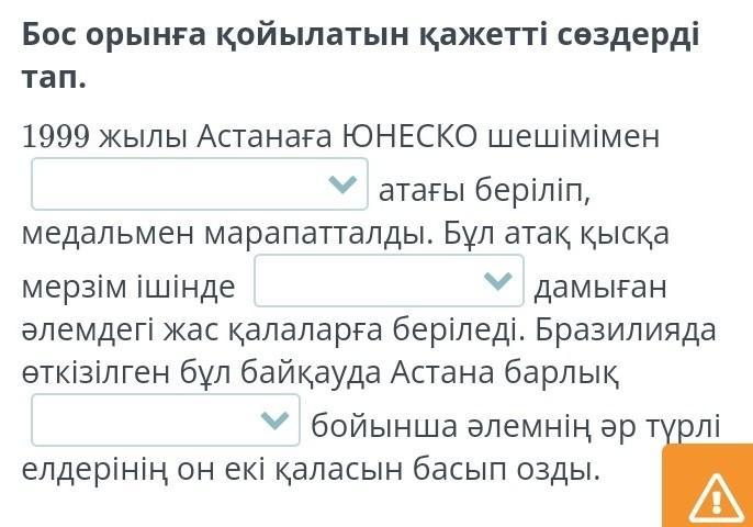 Бос орынға қойылатын қажетті сөздерді тап 1999жылы Астанаға ЮНЕСКО шешімімен СРОЧНО ПОЖАЛУЙСТА
