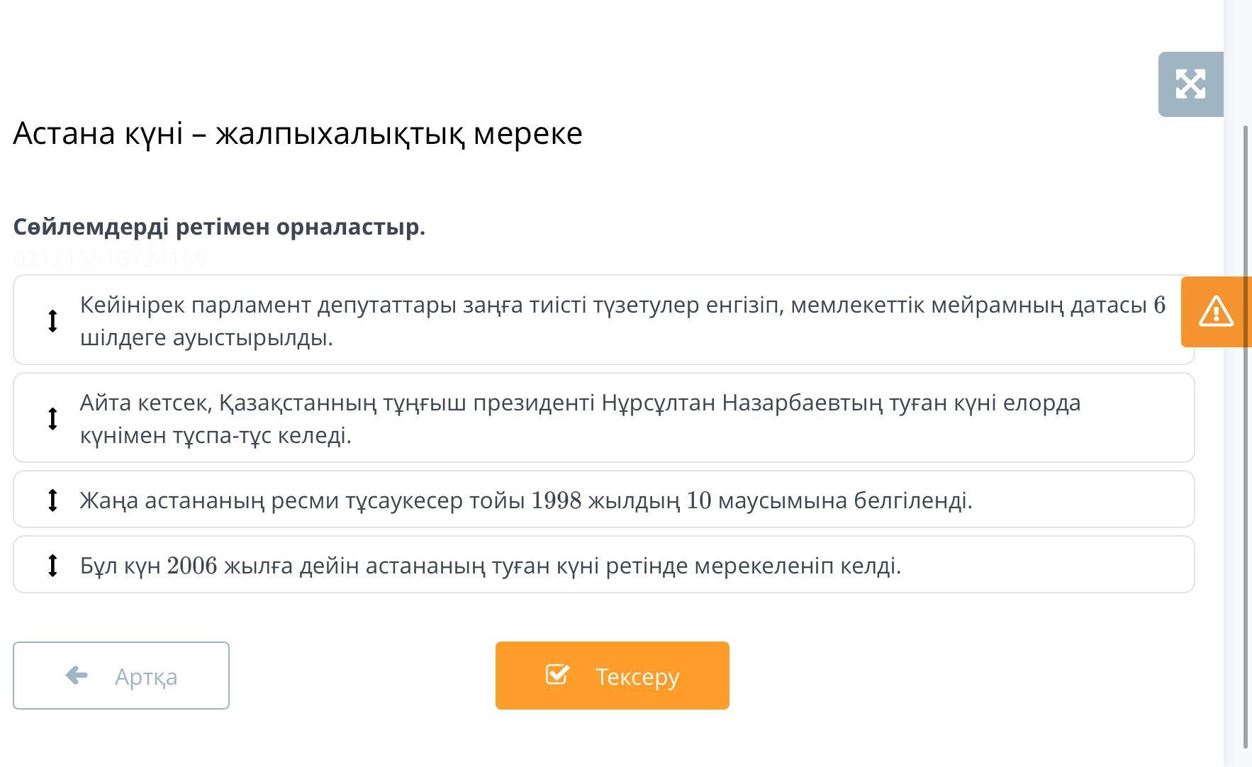 Жаңа астананың ресми тұсаукесер тойы 1998жылдың 10маусымына белгіленді.Бұл күні 2006жылға дейін астананың туған күні ретінде мерекеленіп келді.Кейінірек парламент депутаттары заңға тиісті түзетулер енгізіп,мемелекеттік мейрамның датасы 6шілдеге ауыстырылды.Айта кетсек,Қазақстанның тұңғыш президенті Нұрсұлтан Назарбаевтың туған күні елорда күнімен тұспа-тұс келді