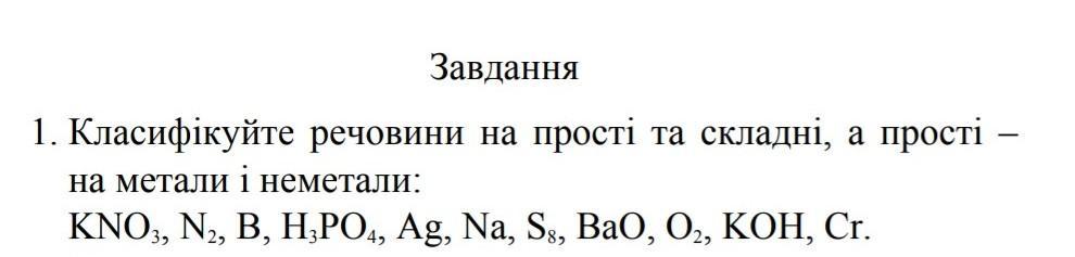 прості : N2, B, Ag, Na, S8 , O2, Cr