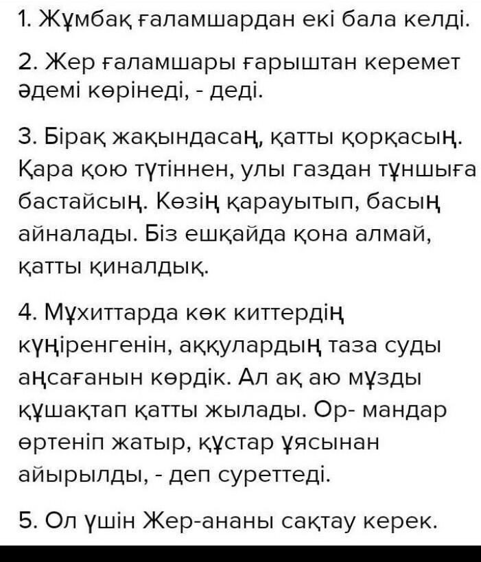 2-тапсырма. Мәтін ішінен анықталған есімдіктерді пайдаланып үш жай сөйлем құрастыр.