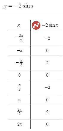 Для построения графика функции y=-2sinx зададимся удобными точка для вычисления.