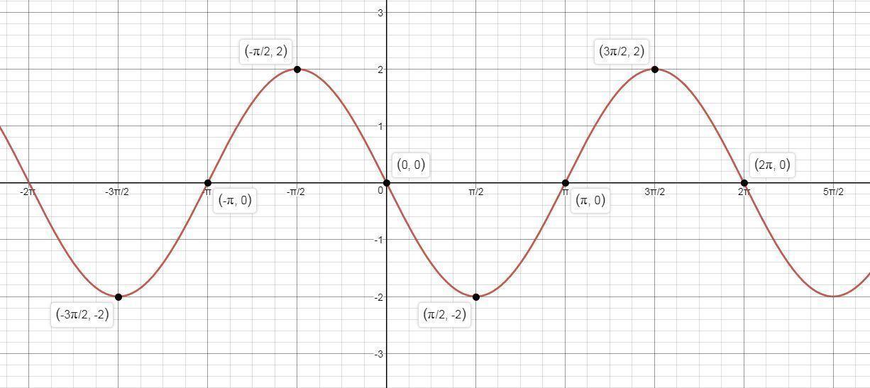 y(- frac{3 pi }{2} ) =-2sin (- frac{3 pi }{2}) = -2 и т.д.