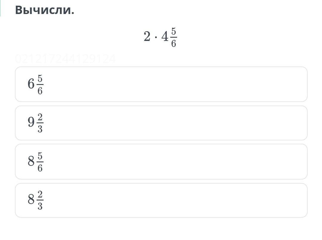 2× 4 5/6= 2/1× 29/6= 29/3= 9 целых 2/3