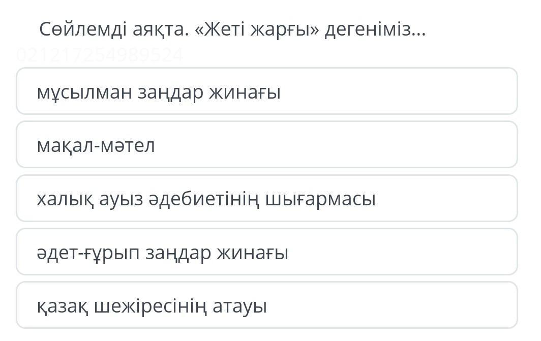Жауабы:әдет-ғұрып заңдар жинағы.