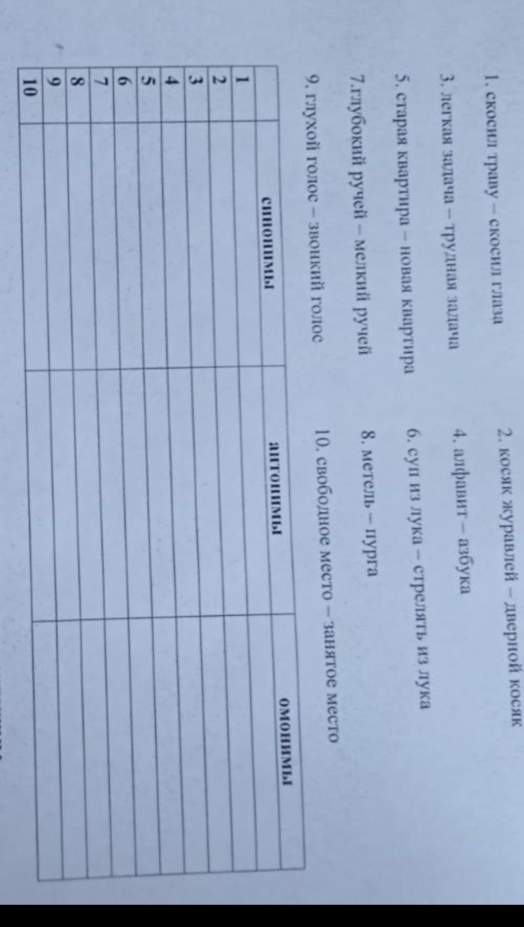 Начертите таблицу в тетради. Алгоритм работы:читайте пару слова по порядку при этом в гужном ячеке ставте знак +