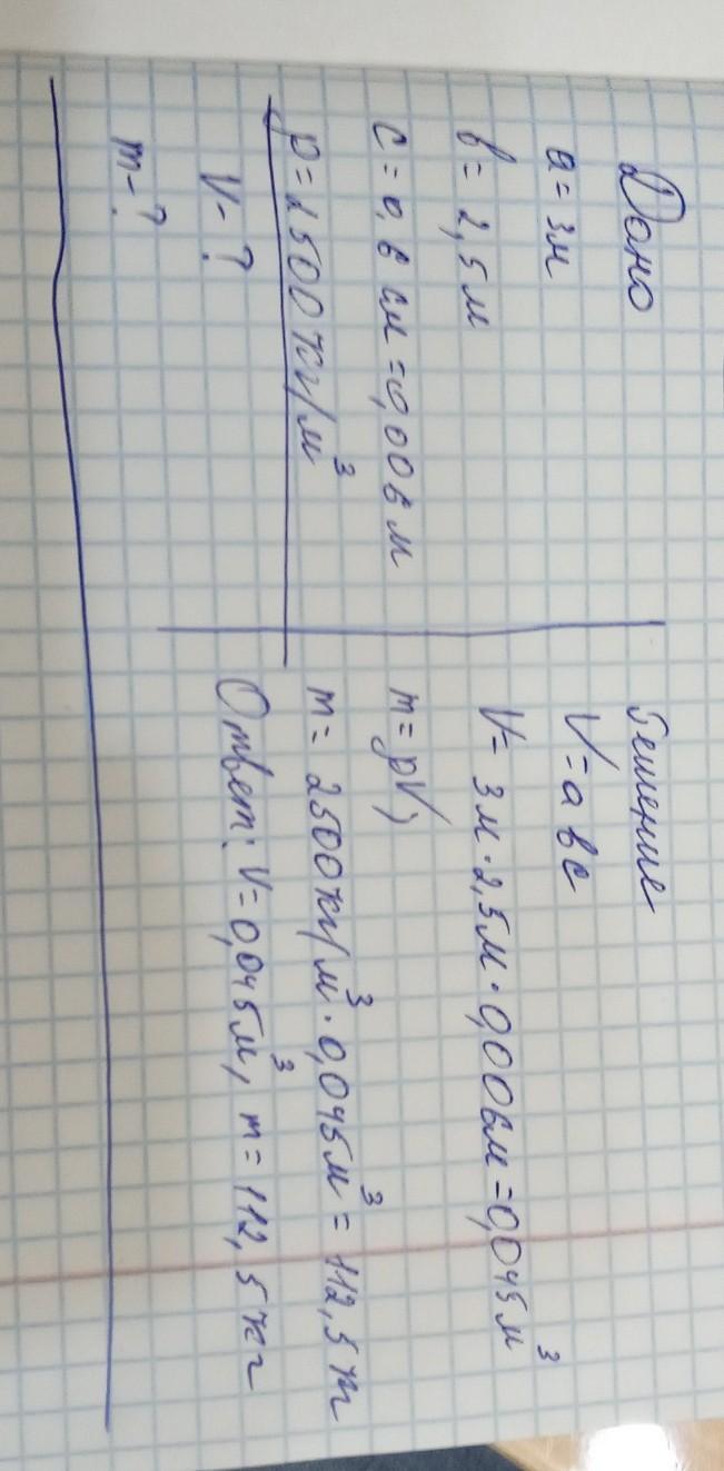 Оконное стекло имеет размеры: длина - 3 м; ширина - 2,5 м; толщина 0,6 см. Плотность стекла 2500 кг /м3.