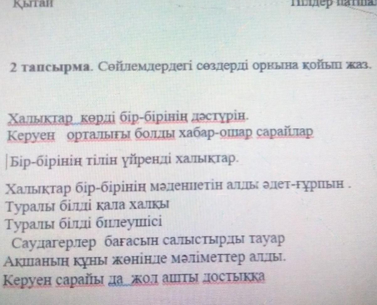 2 тасырма. Сөйлемдердегі сөздерді орнына қойып жаз.