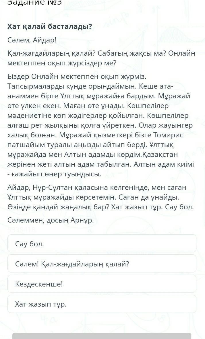 Сәлем!Қал жағдайларың қалаё