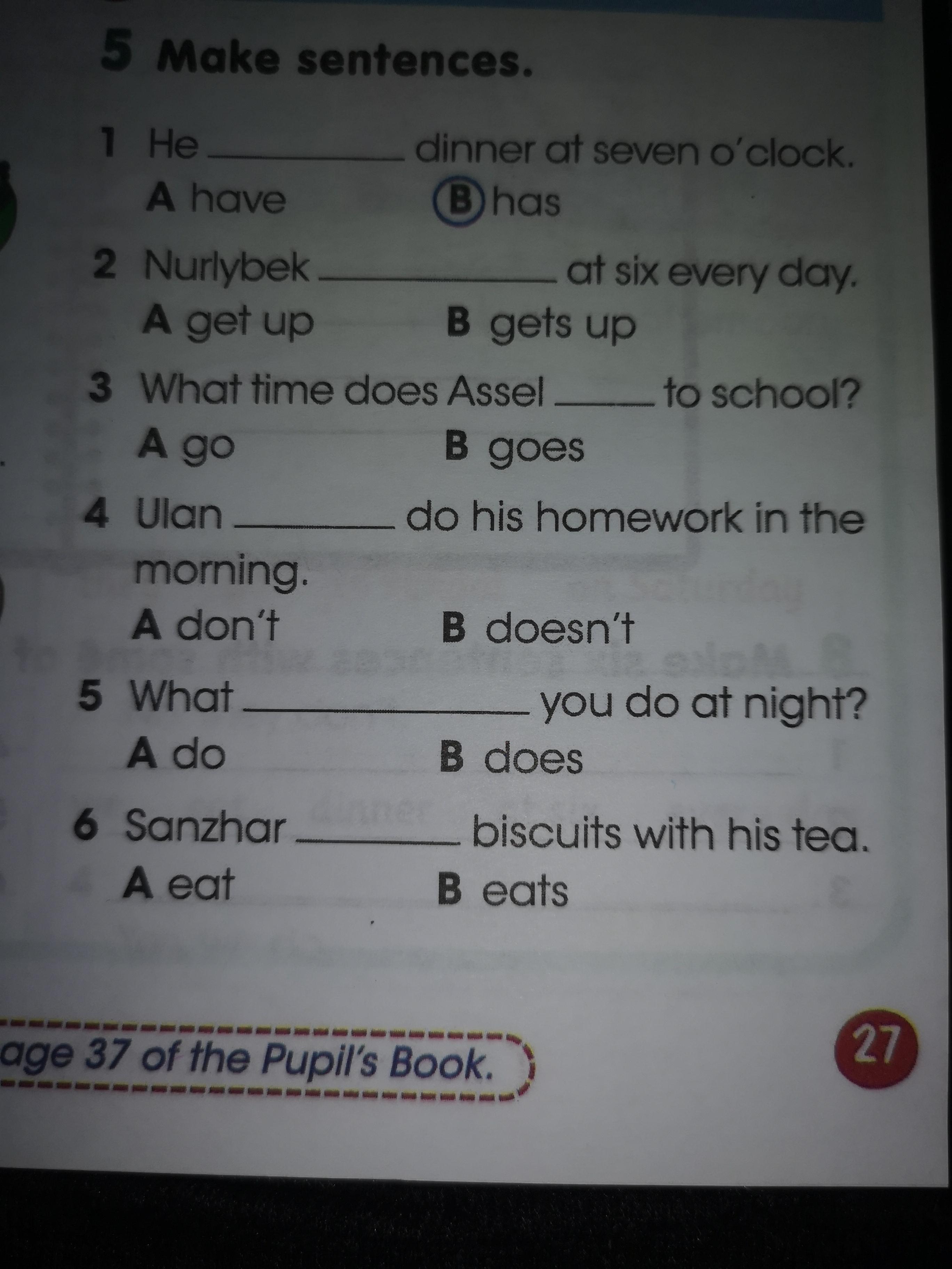 6-в (3 лицо ед.ч.(он he,она she,оно it),поэтому eats).