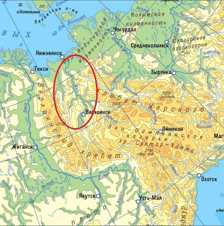 Река Яна протекает в Евразии, в части света Азия, в России, в Якутии.Она расположена севернее Яно-Оймяконского нагорья, южнее моря Лаптевых, западнее хребта Черского, восточнее Верхоянского хребта.Она начинается в предгорьях Верхоянского хребта и впадает в море Лаптевых.Течёт с юга на север.