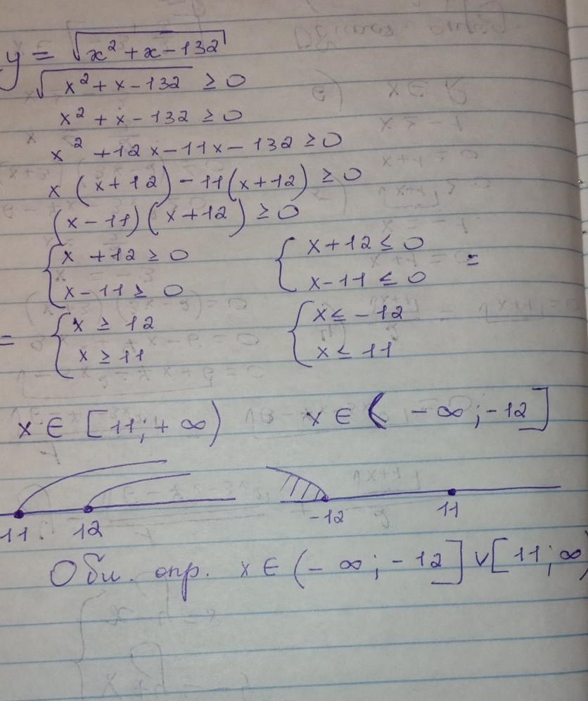 в первом будешь привести в квадратное неравенство которое больше или равно нулю. И потом и двое случая ≥ ≤ двое . И ответ будет (-бескон. до -12]и [11; до бесконечности)