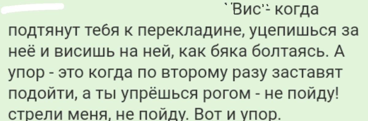Я знаю толь вис это когда ты на такой лестнице видишь надо согнуть логти и висеть 10 секунд вроде как