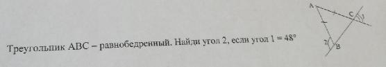 1-случай. Пусть ∠B=48°. Сумма внутренних углов треугольник равна 180°=∠A+∠C+∠B, отсюда ∠A+∠C=180°-∠B=180°-48°=132°. Но ∠A=∠C и поэтому ∠A=∠=132°:2=66.°